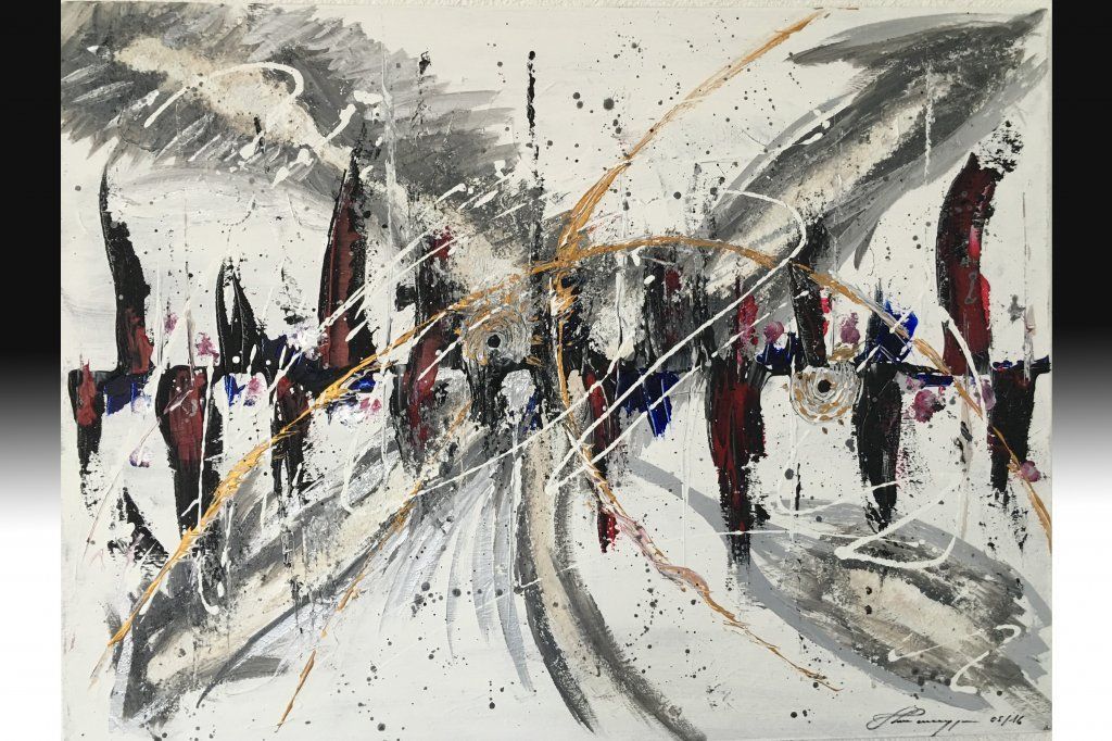 Es sind neue Leinwandbilder entstanden und zwar eine neue sehr stark wirkende kraftvolle Bilderlinie. Vorwiegend mit Strukturmasse und Schriftzügen, Brands oder Logos integriert.
