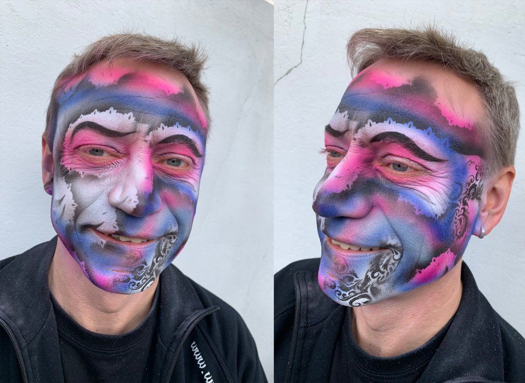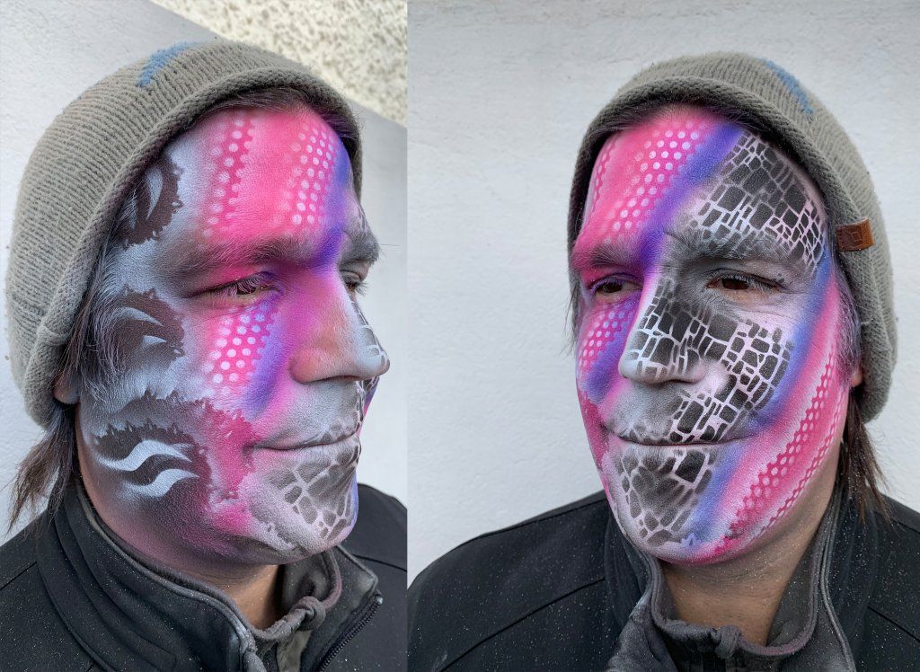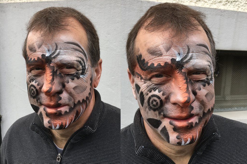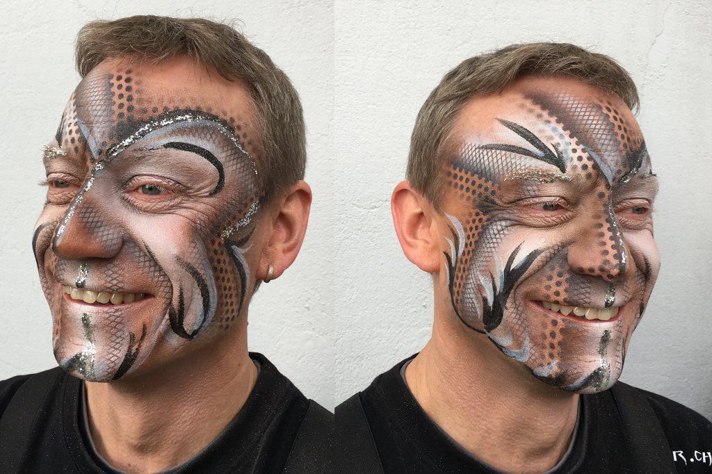 Während vielen Jahren schminke ich während meiner Aktivzeit als Solothurner Fasnächtler viele Gesichter und Cliquen. Die Techniken sind Pinsel und Schwamm und oder Air Brush. Meine Kreationen sind oft eine Mischung aus den verschiedenen Techniken.